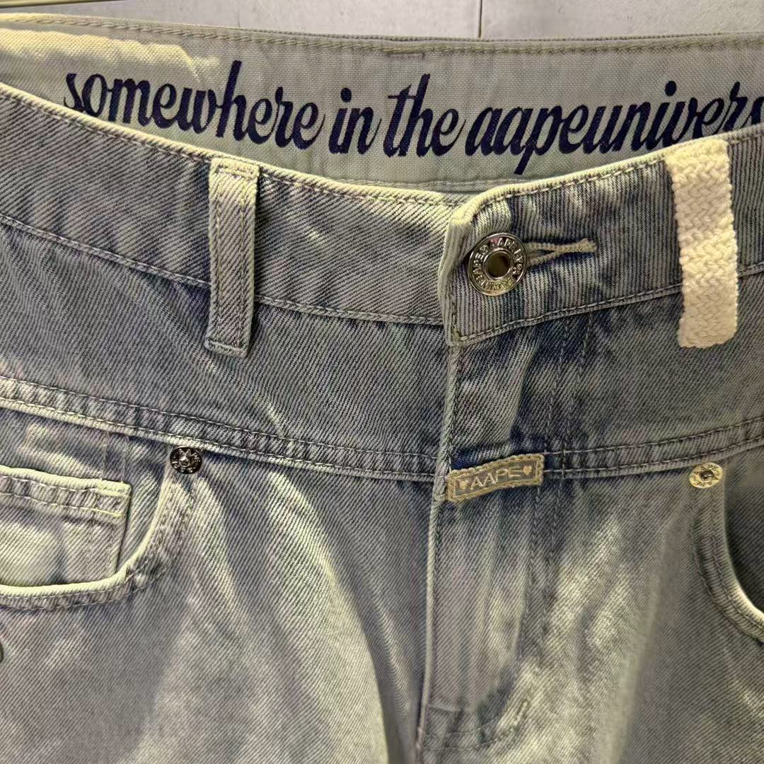 香港代購 專櫃正品 Aape 26春夏 女裝 心型猿人小熊徽章水洗闊腿牛仔長褲D619