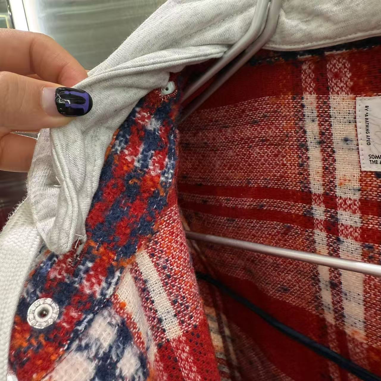 香港直郵 Aape 25秋冬 男裝 可拆卸帽格紋翻領潮流長袖襯衫外套8549